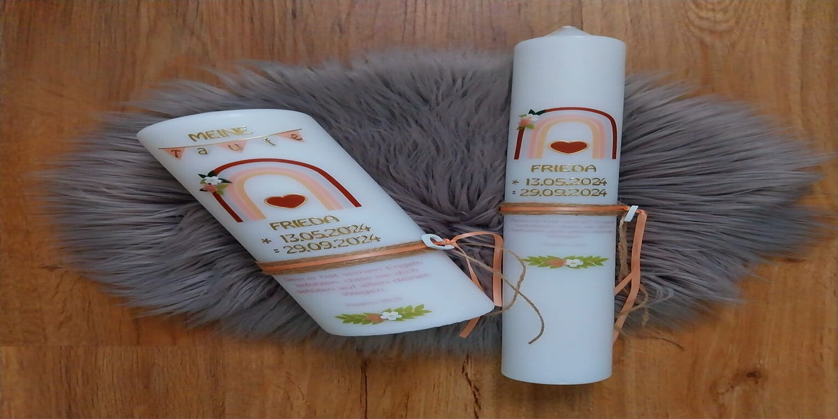 Bei mir finden Sie liebevoll gestaltete, personalisierte Kerzen, die jeden besonderen Moment unvergesslich machen. Ob mit Namen, Datum oder einem individuellen Taufspruch – ich fertige einzigartige Taufkerzen im stilvollen Rustik- oder Vintage-Design, die perfekt für Mädchen und Jungen geeignet sind. Auch Patenkerzen, Kommunionkerzen und Hochzeitskerzen gehören zu meinem Angebot. Jede Kerze wird von mir mit größter Sorgfalt und Liebe zum Detail handgemacht, um Ihren ereignisreichen Tag unvergesslich zu machen. Lassen Sie mich Ihre Wünsche umsetzen und schaffen Sie mit einer individuellen Kerze ein besonderes Erinnerungsstück!