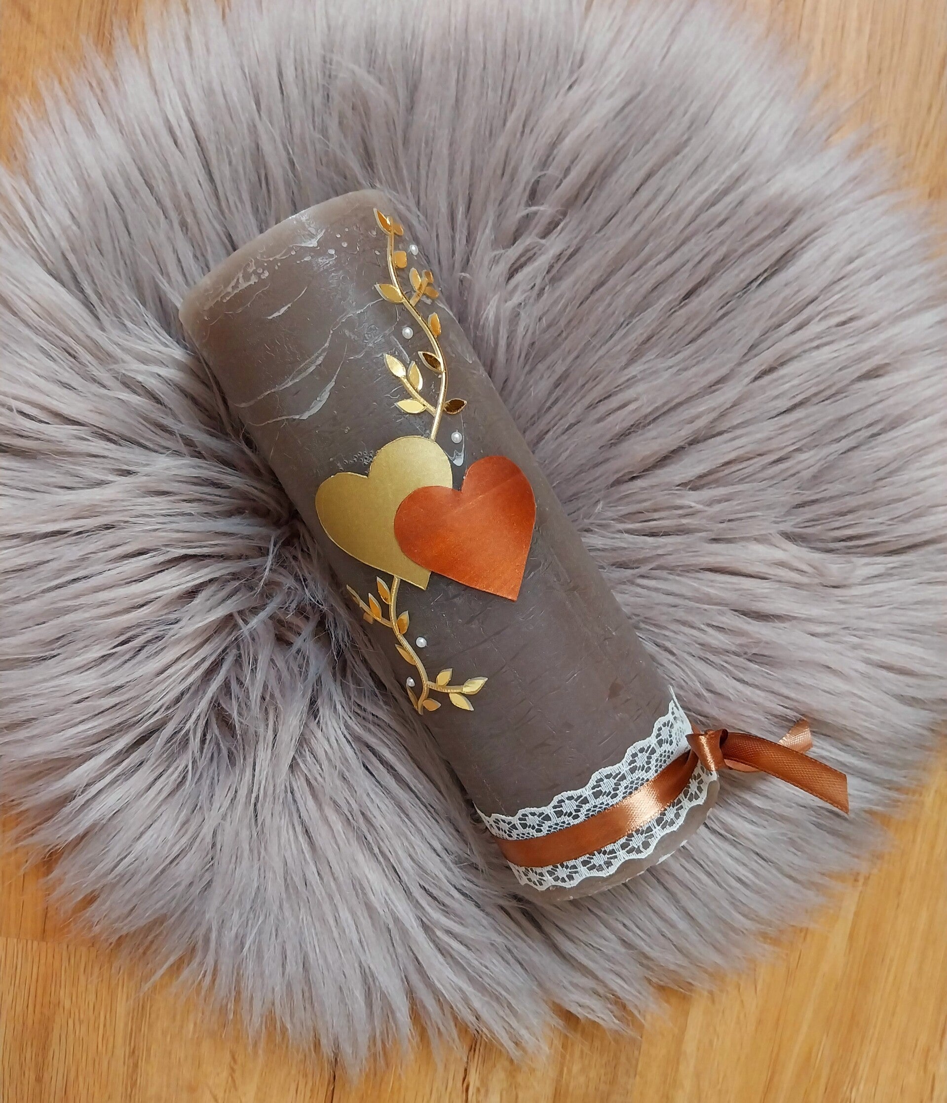 Hochzeitskerze, Traukerze Rustik mit Teelichteinsatz ,,2 Herzen''