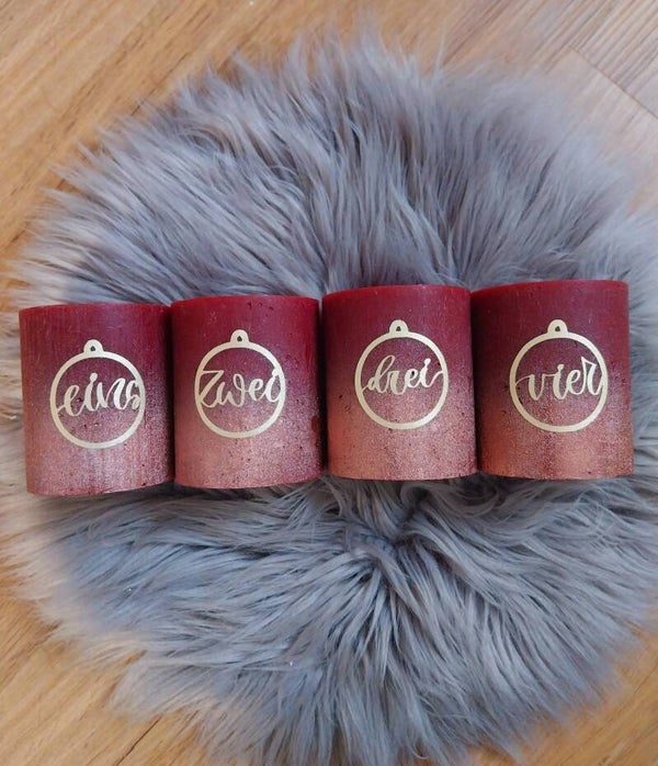 Die Adventskerzen eignen sich für Adventskränze und auch für individuell gestaltete Adventsdekorationen. Gestalten sie die modernen Adventskerzen mit den Zahlen 1-4 oder mit schöne Weihnachtsmotive individuell nach Ihrem Geschmack mit anderen weihnachtlichen Dekorationen, Tannenzweigen, kleinen Christbaumkugeln oder Streudeko. Mit diesen Kerzen wissen Sie auch immer sofort, welche bedruckte Kerze zum Advent als nächstes angezündet werden muss. Wunderbar eignen sie die 4er Set Kerzen als Geschenk zur Vorweihnachtszeit an eine andere Familie.