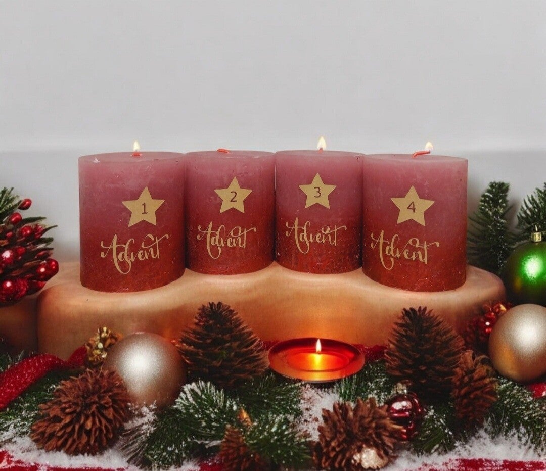 Die Adventskerzen eignen sich für Adventskränze und auch für individuell gestaltete Adventsdekorationen. Gestalten sie die modernen Adventskerzen mit den Zahlen 1-4 oder mit schöne Weihnachtsmotive individuell nach Ihrem Geschmack mit anderen weihnachtlichen Dekorationen, Tannenzweigen, kleinen Christbaumkugeln oder Streudeko. Mit diesen Kerzen wissen Sie auch immer sofort, welche bedruckte Kerze zum Advent als nächstes angezündet werden muss. Wunderbar eignen sie die 4er Set Kerzen als Geschenk zur Vorweihnachtszeit an eine andere Familie.