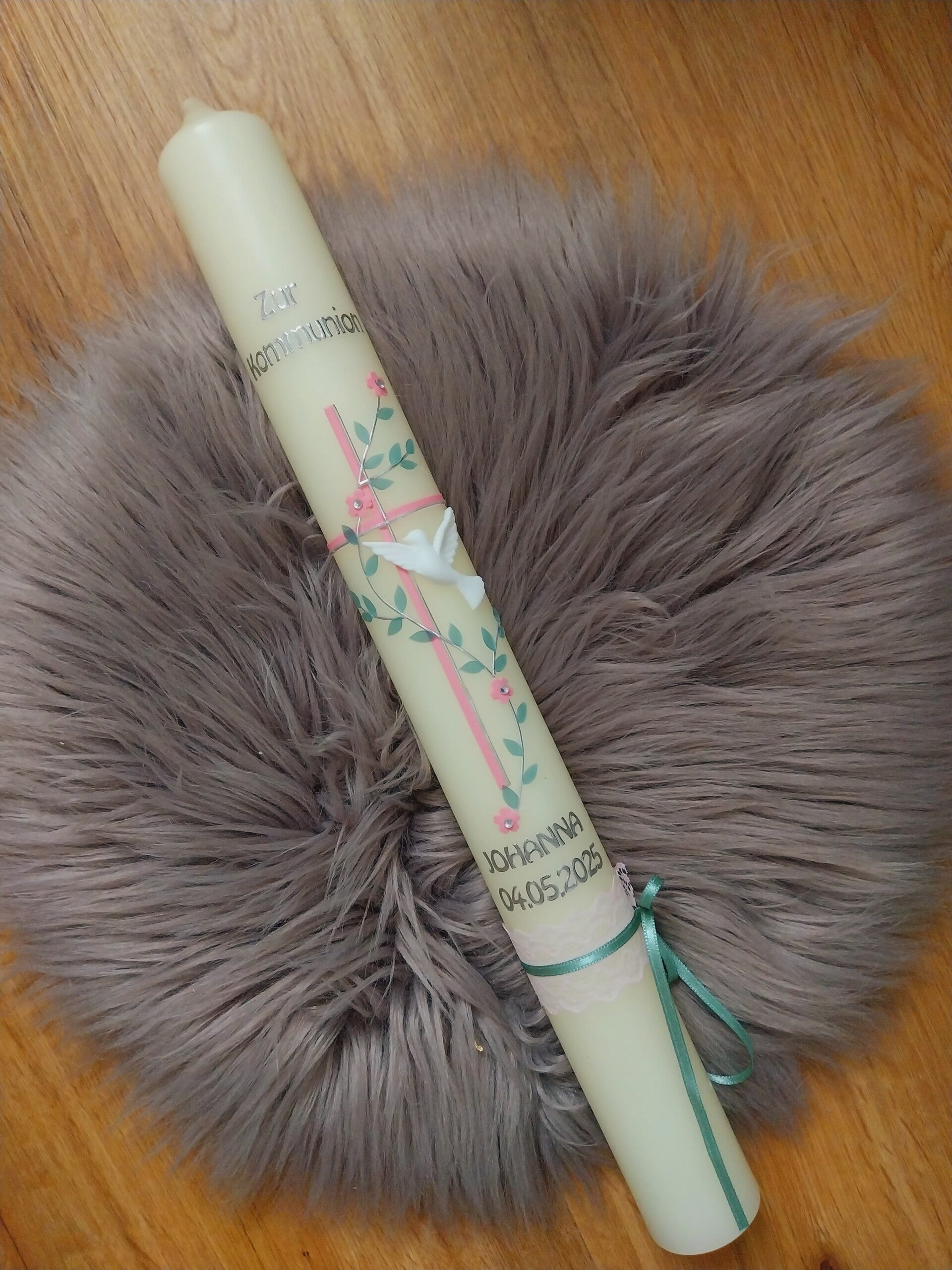 Die Größe der Kommunionskerze ist 40/4 cm