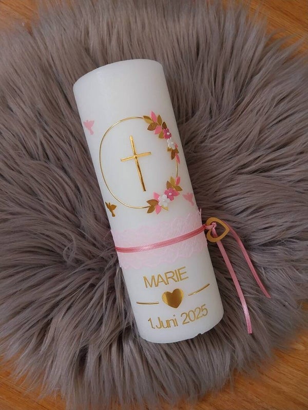 Bei mir finden Sie liebevoll gestaltete, personalisierte Kerzen, die jeden besonderen Moment unvergesslich machen. Ob mit Namen, Datum oder einem individuellen Taufspruch – ich fertige einzigartige Taufkerzen im stilvollen Rustik- oder Vintage-Design, die perfekt für Mädchen und Jungen geeignet sind. Auch Patenkerzen, Kommunionkerzen und Hochzeitskerzen gehören zu meinem Angebot. Jede Kerze wird von mir mit größter Sorgfalt und Liebe zum Detail handgemacht, um Ihren ereignisreichen Tag unvergesslich zu machen. Lassen Sie mich Ihre Wünsche umsetzen und schaffen Sie mit einer individuellen Kerze ein besonderes Erinnerungsstück!