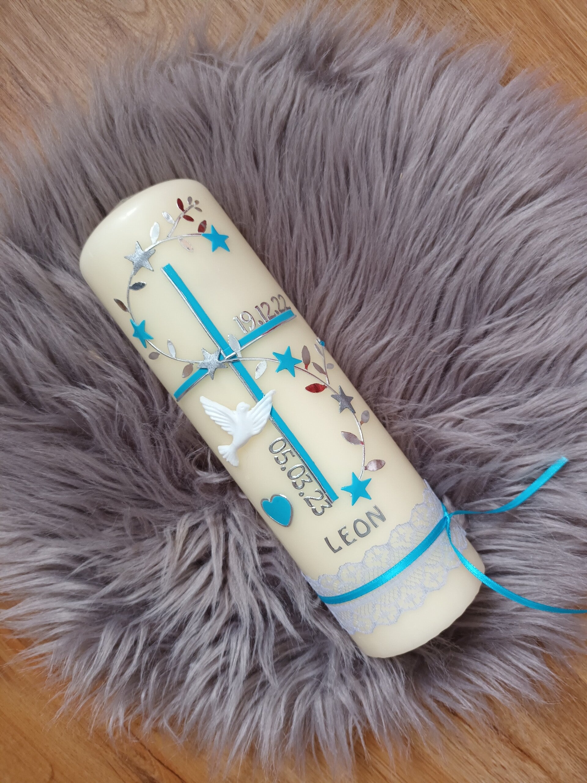 Bei mir finden Sie personalisierte und handgefertigte Kerzen mit Namen, Datum und Taufspruch für einen unvergesslichen und ereignisreichen Tag.